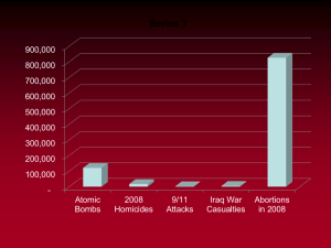 As a society we are repulsed at the atrocities of the Nazi Holocaust in which 6 million people were exterminated because they were deemed undesirable by the ruling power. The genocide of defenseless races, such as the hundreds of thousands of Kurds killed with chemical weapons by Saddam Hussein or millions massacred by their oppressors throughout history in places like Rawanda, Korea, Pakistan, and places throughout the world incite our anger especially when the world does not intervene to stop the killing. We are disturbed by the thousands of homicides that take place in our country each year and are concerned by small reports of deaths in our own city.